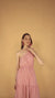 Elegant Baby Pink Poly Rayon Square Neck Dress With Checkered & Sleeveless