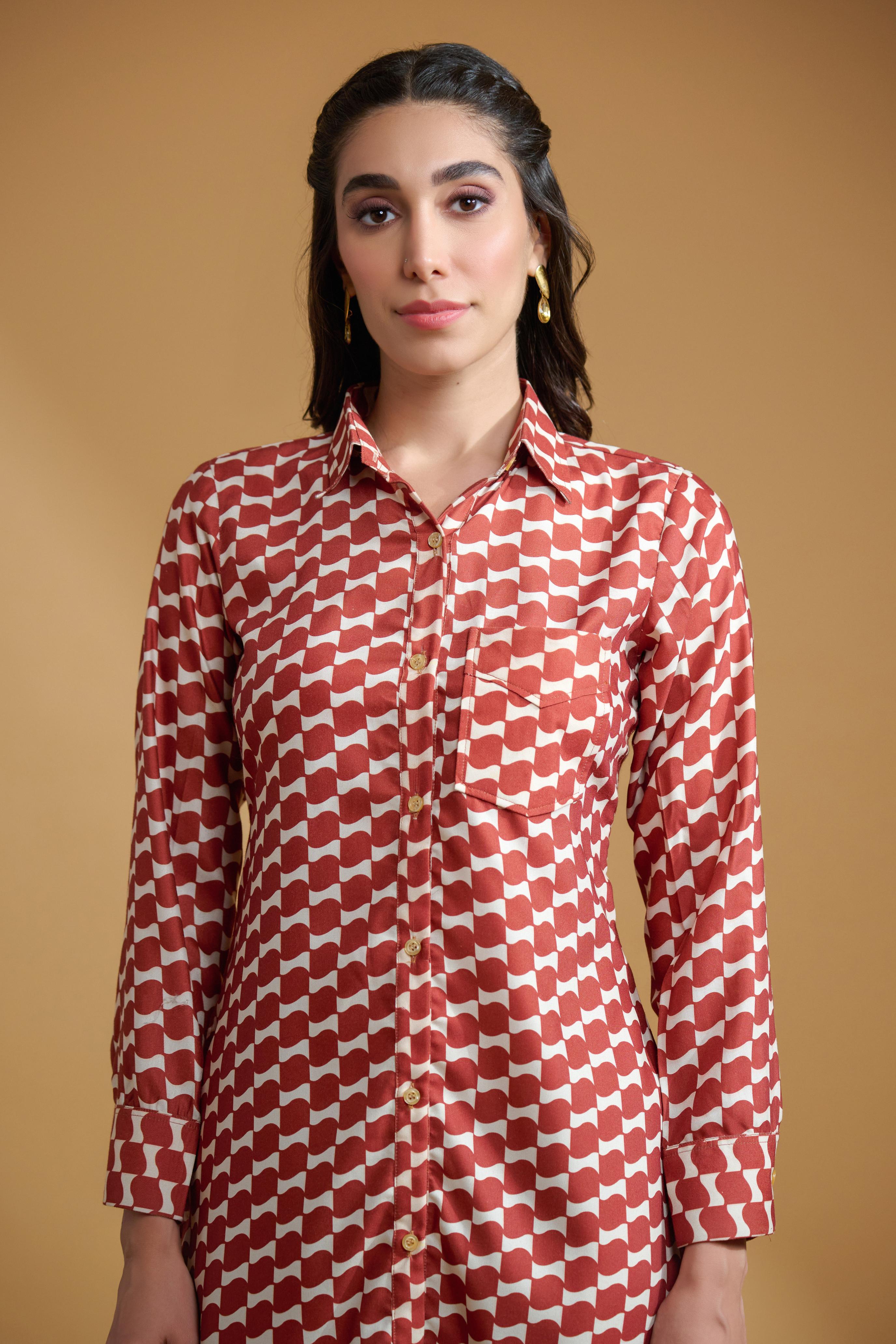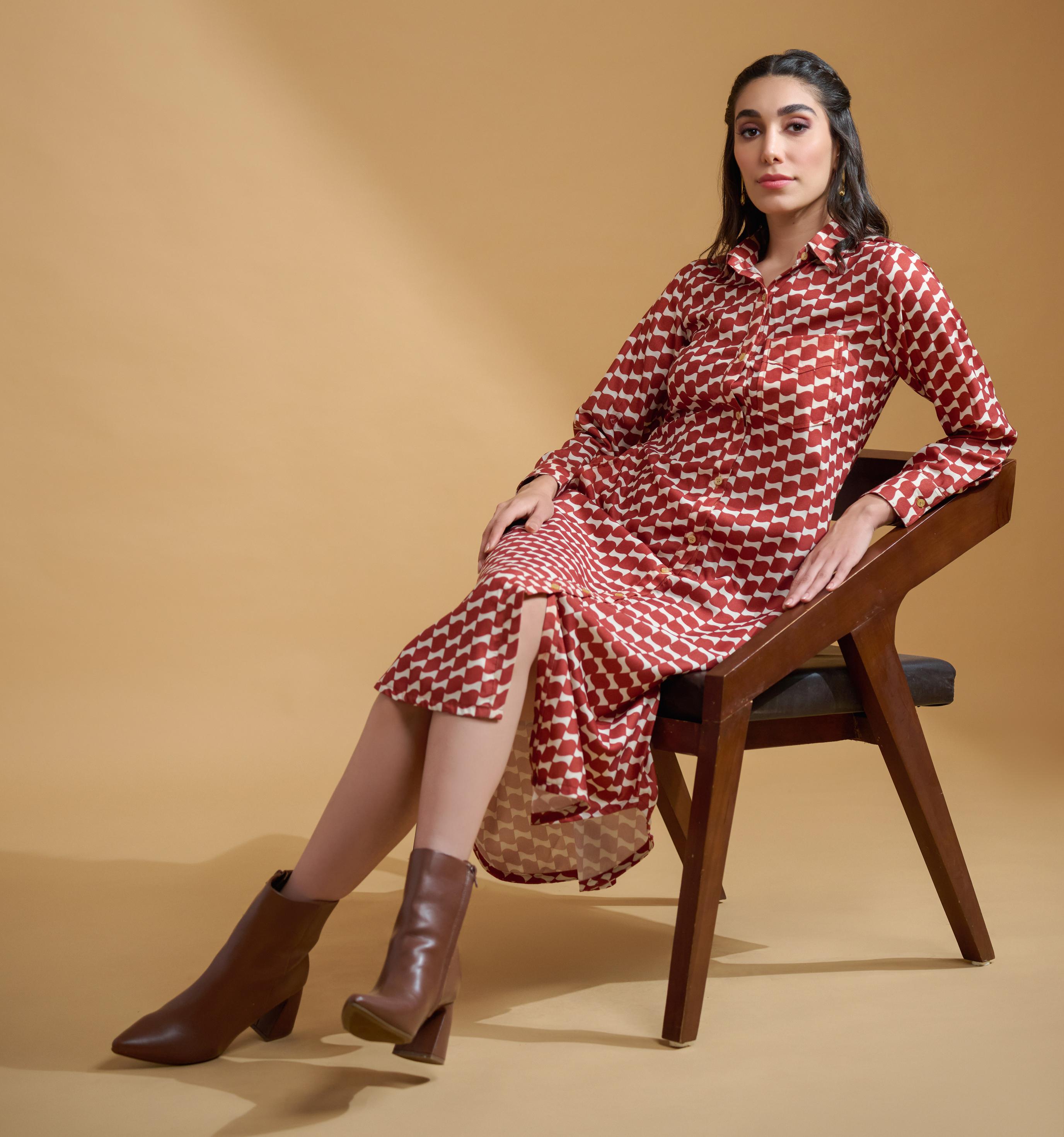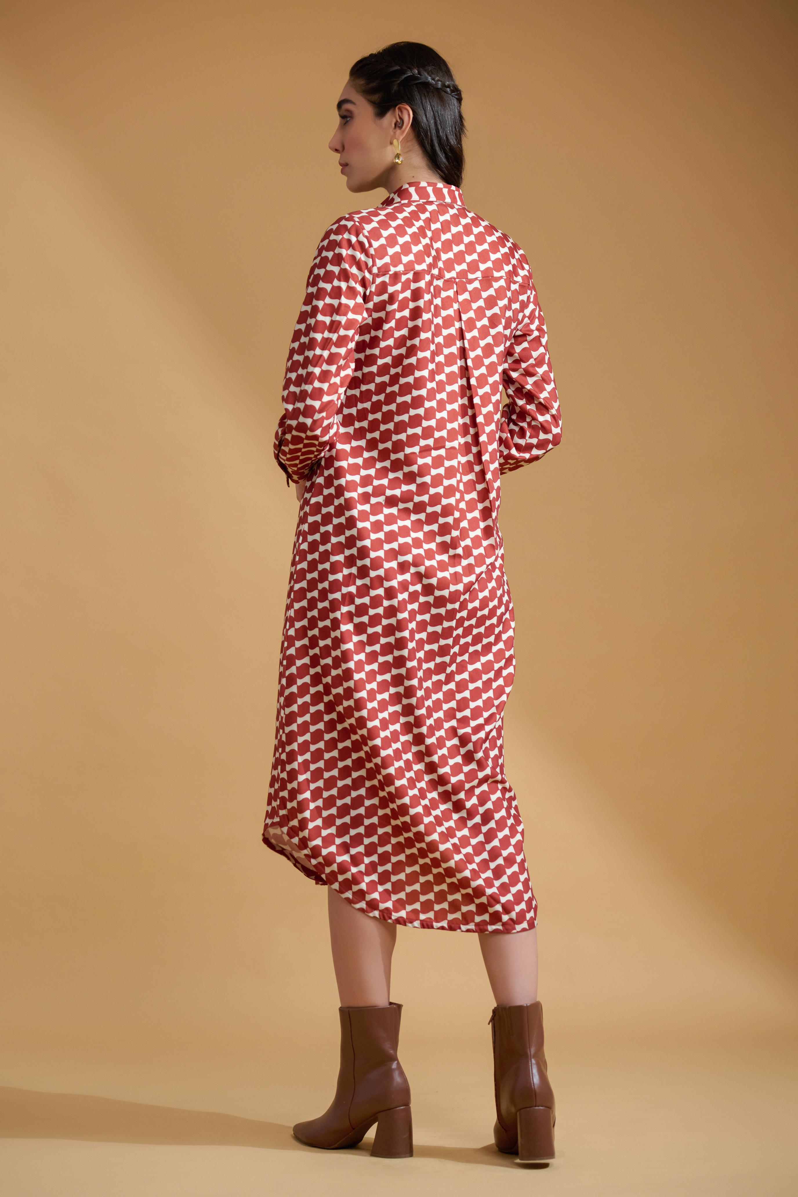 Maroon Poly Rayon Square Cuff Sleeve Dress